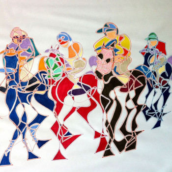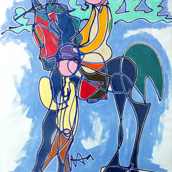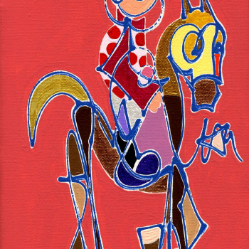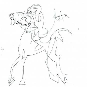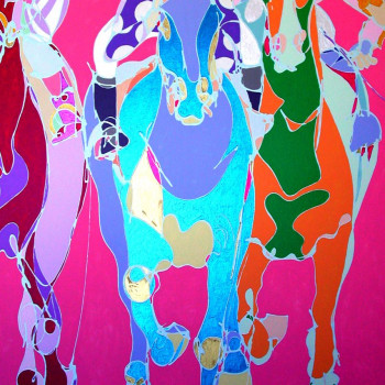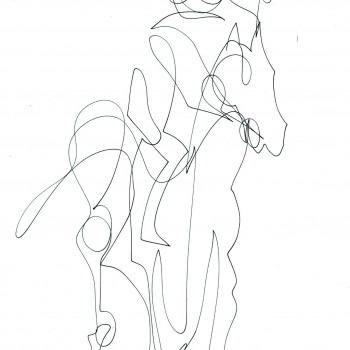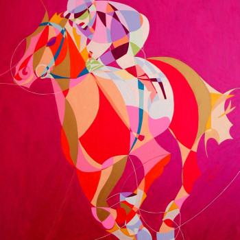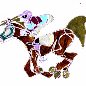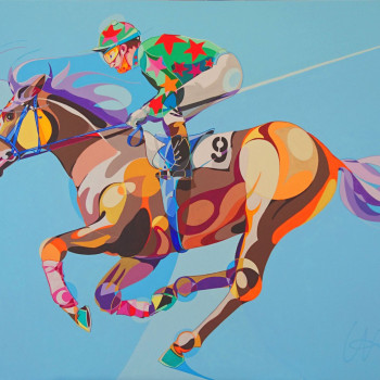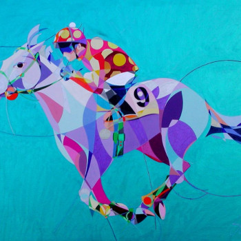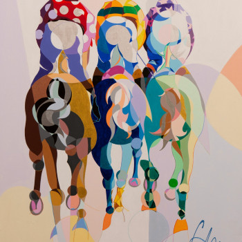 Con mucho esmero trata de dar mucho protagonismo a esta tercera dimensión que requiere un conocimiento exquisito de la geometría que forma una simbiosis impactante con este grado de abstracción que caracteriza sus trabajos de temática hípica.