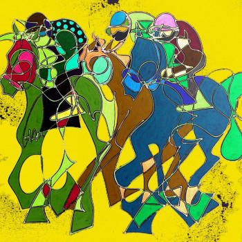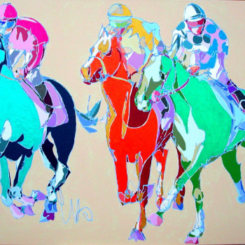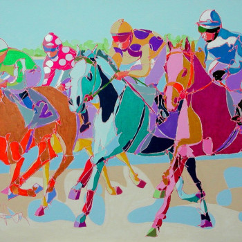 Realizado durante sus meses iniciales en el estudio de Sanlúcar de Barrameda, en 2004, la artista plasma este instante de las famosas Carreras de Caballos, celebrado en el hipódromo natural de las orillas del río Guadalquivir.