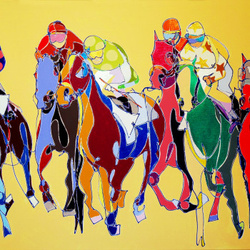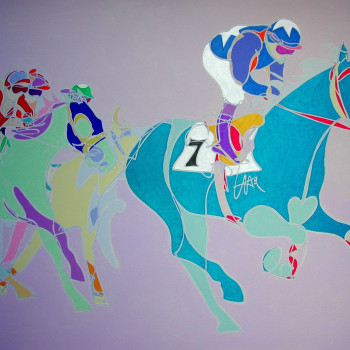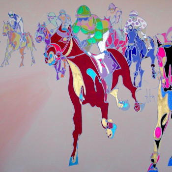 Esta temática hípica, las carreras de caballos, de las más plasmadas del repertorio de Uta se recrea en la interpretación de una obra de ella, realizada hace 14 años.