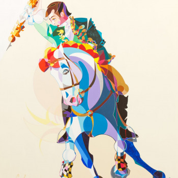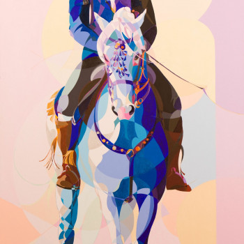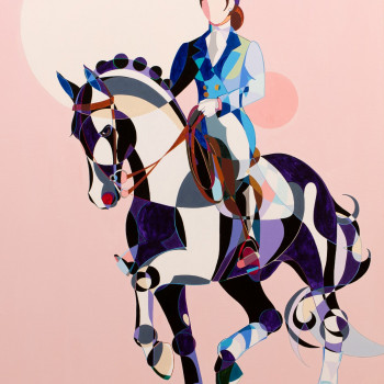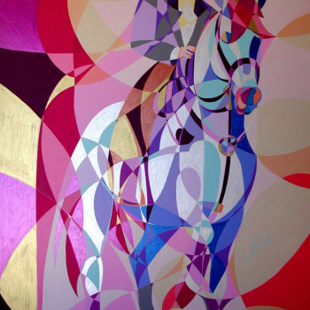 Retrato hípico que parece ser un puzle terminado, de partes geométricas, desiguales, con clara distinción entre los diferentes campos. Las fracciones, muy en especial la mirada de este caballo, desprenden una gran paz y reflejan el pleno bienestar del animal.