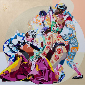Traducido en perfección a su estilo “cubismo pop” la escena taurina es un ejemplo impresionante de composición entre la temática taurina, tan clásico con el toreo goyesco y la actualidad, la presencia del estilo de Uta.